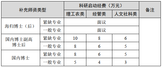 (2)科研启动经费标准