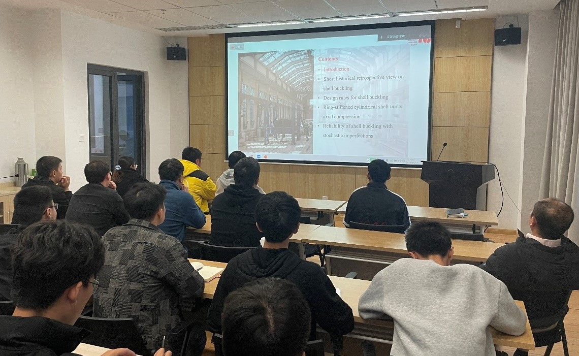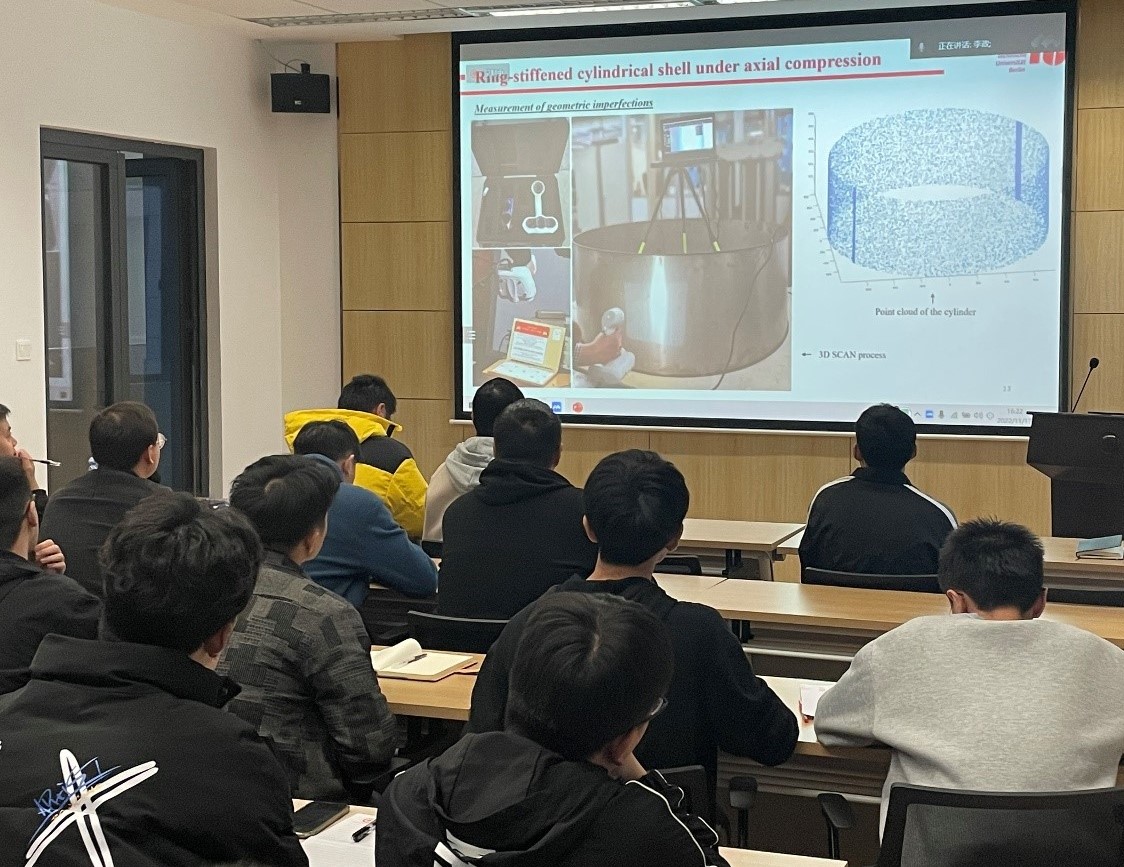2022年11月17日下午,柏林工业大学李政博士应邀以“轴向压缩下薄圆柱壳的屈曲——从确定性分析到随机分析”为主题做了精彩的线上讲座。太阳集团tyc33455官网张建副经理和宋波教授共同主持了本次讲座,太阳集团tyc33455官网师生在公司445会议室或在线参加了讲座。
