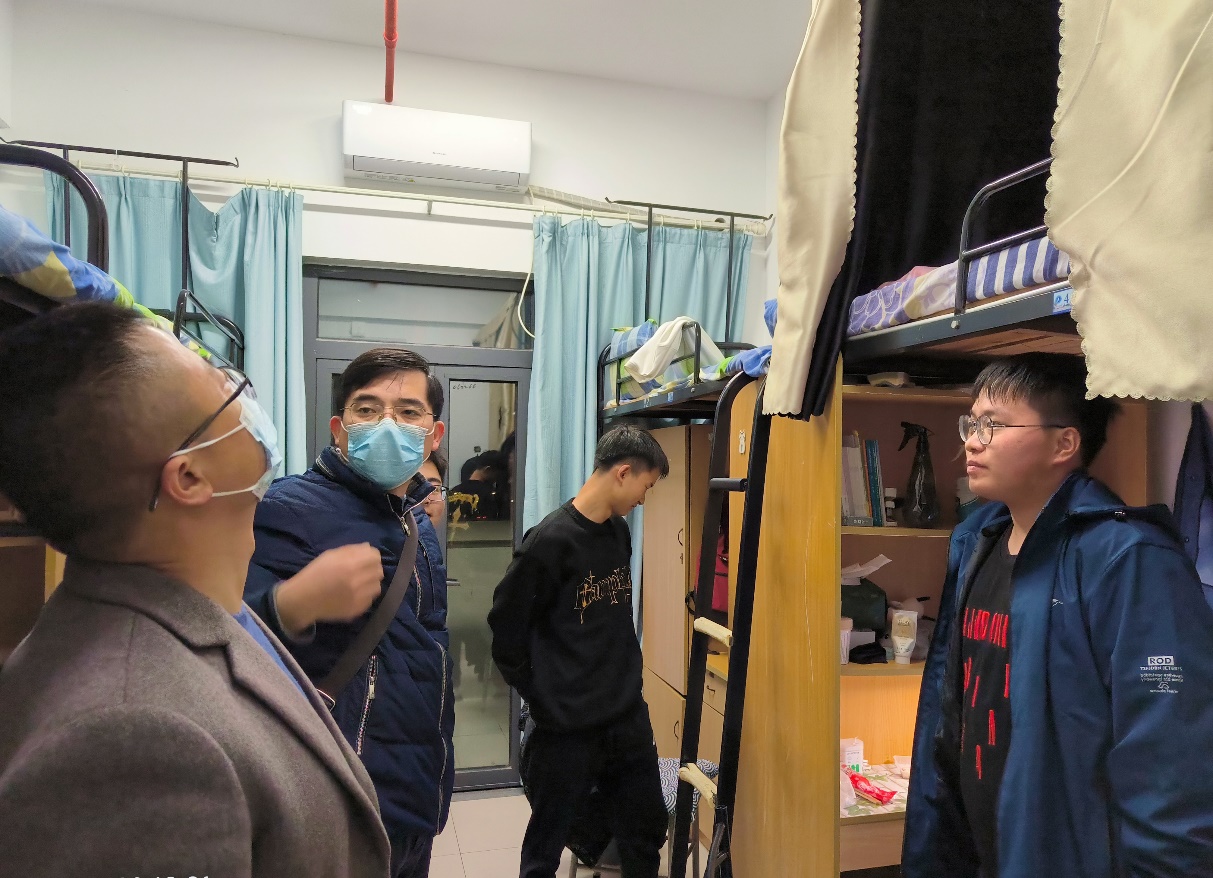 为切实做好疫情防控新形势下的员工管理工作,及时了解员工的思想动态、心理状况、宿舍安全卫生以及期末备考复习情况,确保员工在校生活、学习和日常管理工作有序、平稳开展。11月29日、12月5日连续多日,公司党委书记翟纯纯、副经理张建、钟伟与各专业辅导员老师深入员工宿舍,倾听员工诉求,了解近期员工思想动态和实际困难,与部分员工进行了深入交流。