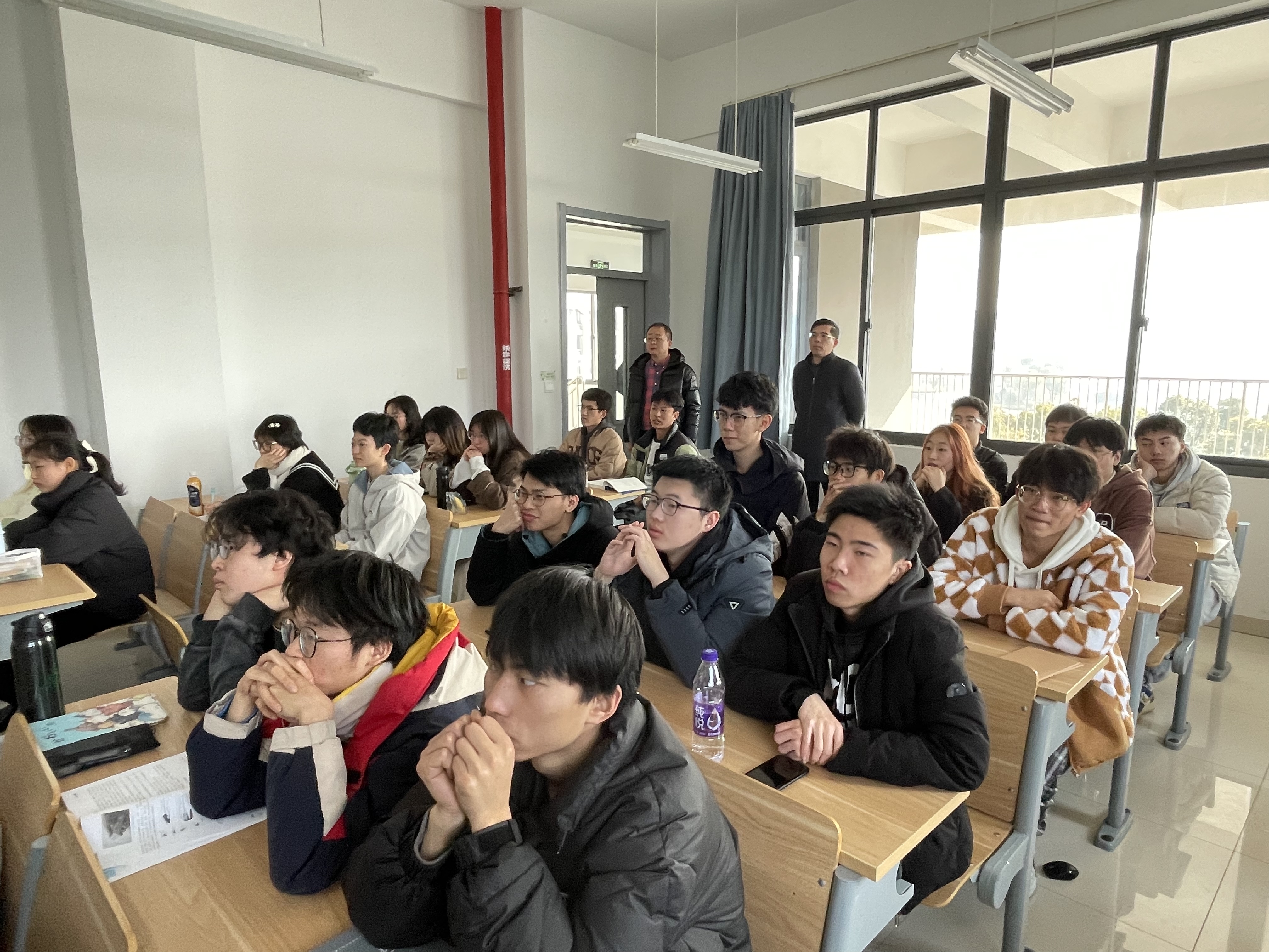 公司副经理钟伟、副经理李磊也分别来到了本科生和研究生的课堂,先后听取了朱成顺副教授主讲的《数控技术》课程和刘芳华教授主讲的《现代控制理论及工程》课程,对他们二人讲授的课程给予了充分的肯定,并提出要保障好课堂教学质量的相关建议,同时鼓励教师让员工多思多学、勤于交流,不断在相互沟通中提高学习能力。