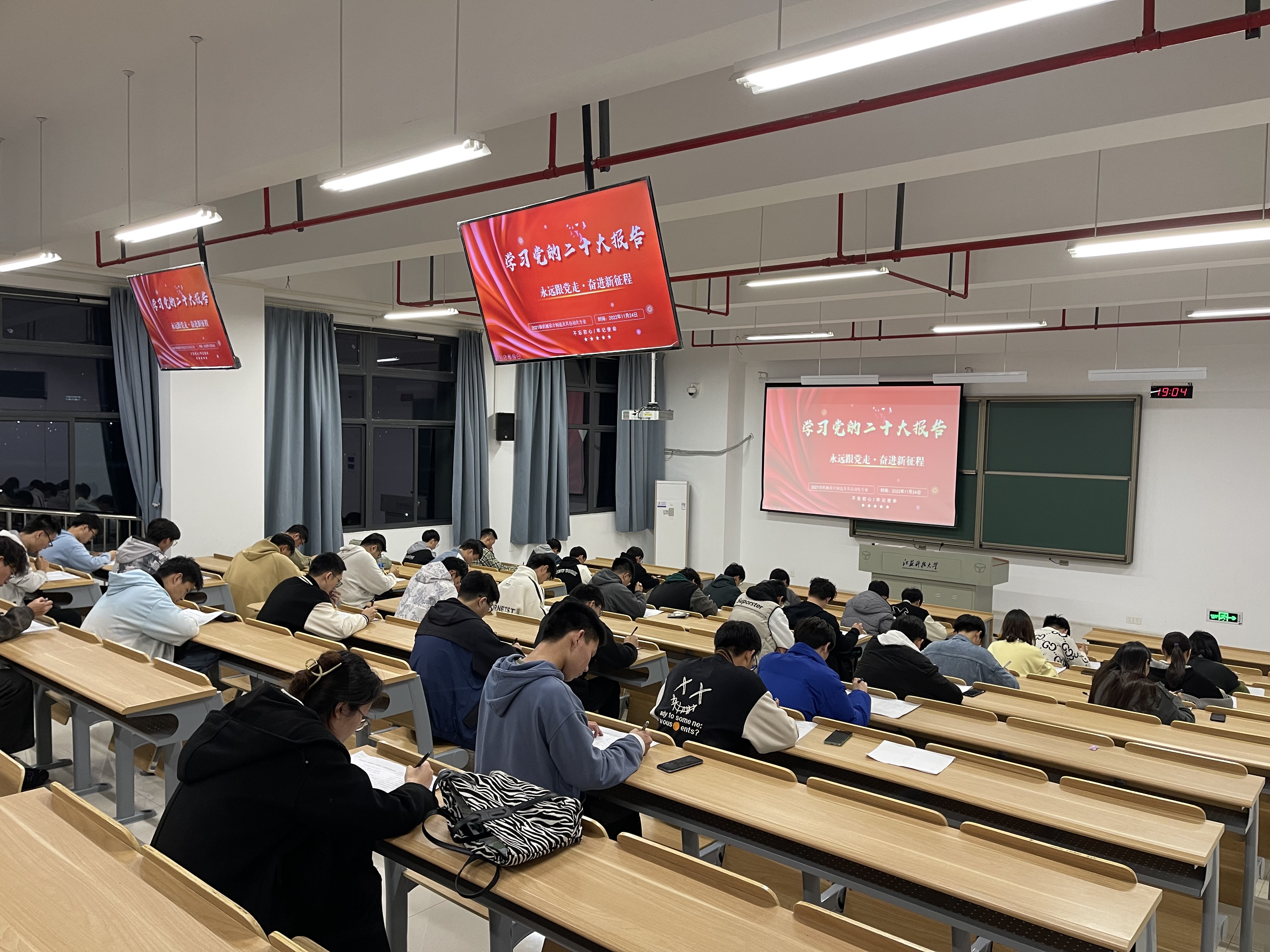 3月1日,太阳集团tyc33455官网“青春心向党 奋进新时代”学习党的二十大主题知识竞赛决赛在经世楼201举行。决赛现场气氛热烈,各位选手沉着冷静,反应迅速,踊跃答题,赛出了水平,彰显了风采。最终评选出一等奖1名,二等奖2名,三等奖3名。
