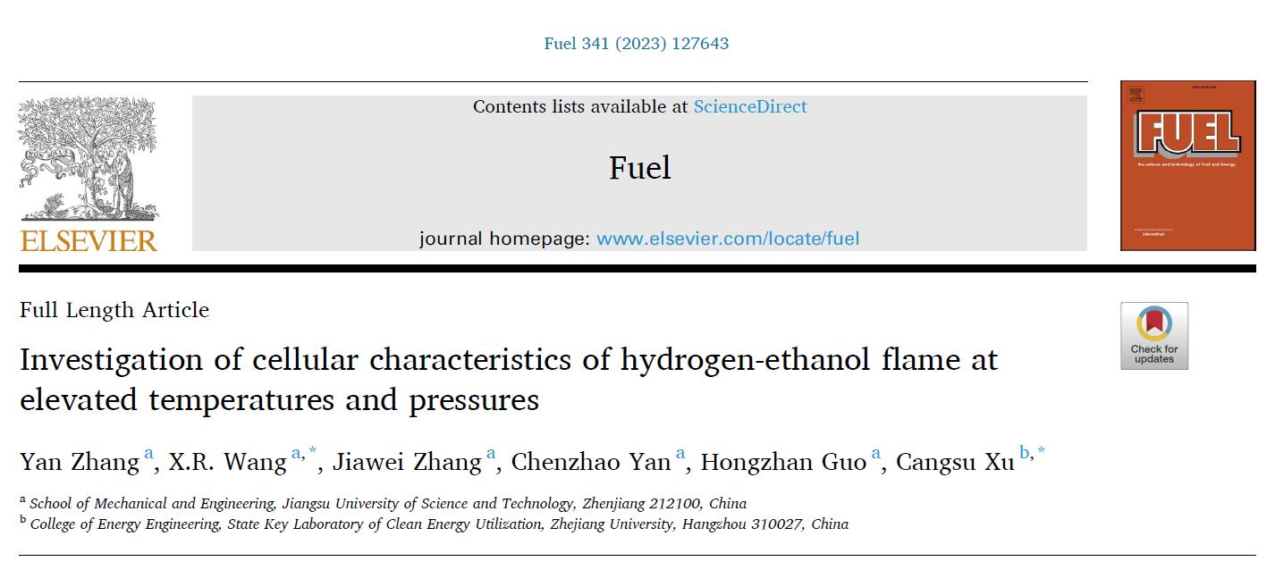 以“Investigation of cellular characteristics of hydrogen-ethanol flame at elevated temperatures and pressures”为题的原创性研究成果在《Fuel》上公开发表,公司太阳集团tyc33455官网在读硕士研究生张衍为第一作者、导师王筱蓉教授为第二作者、通讯作者。