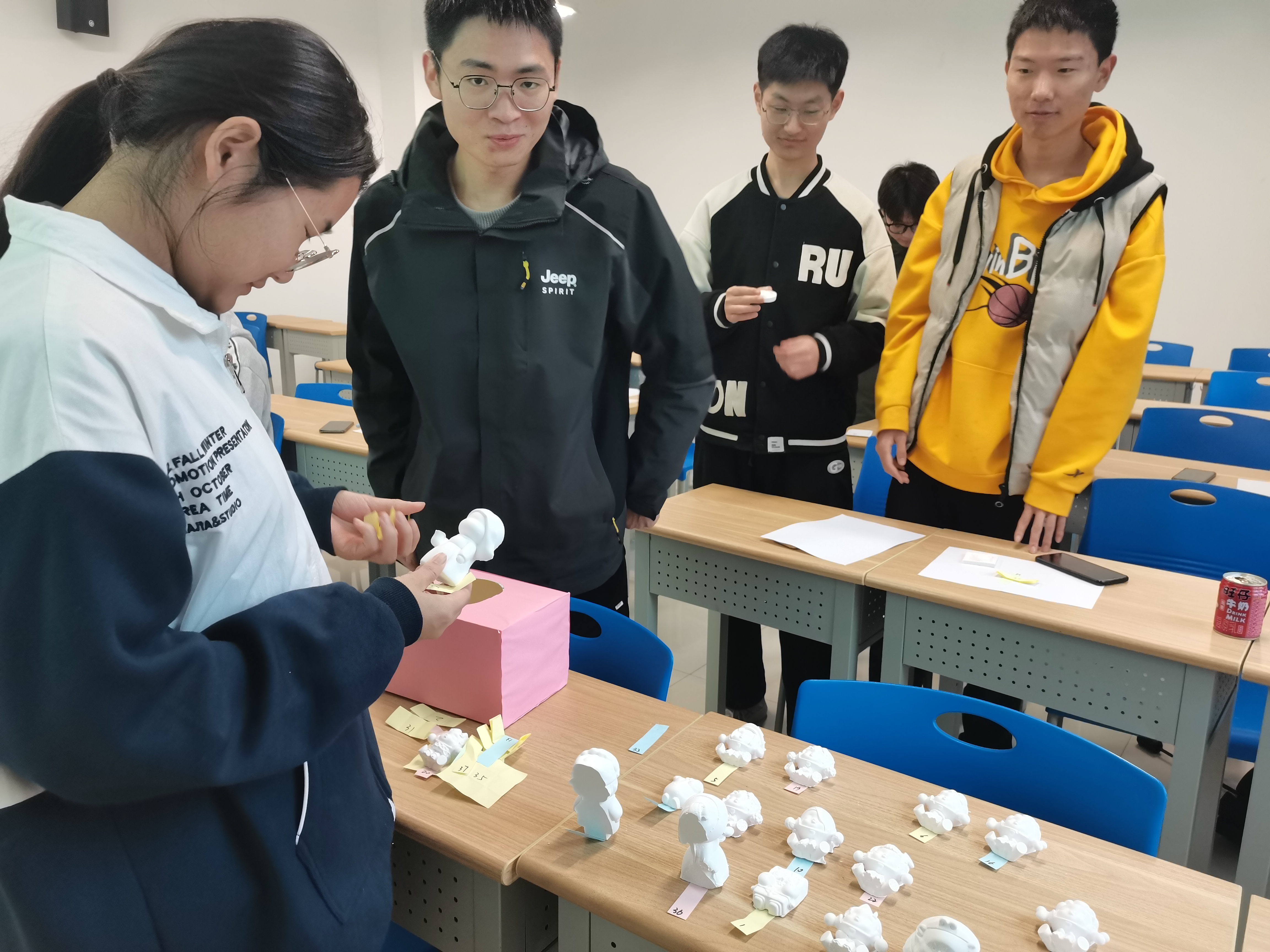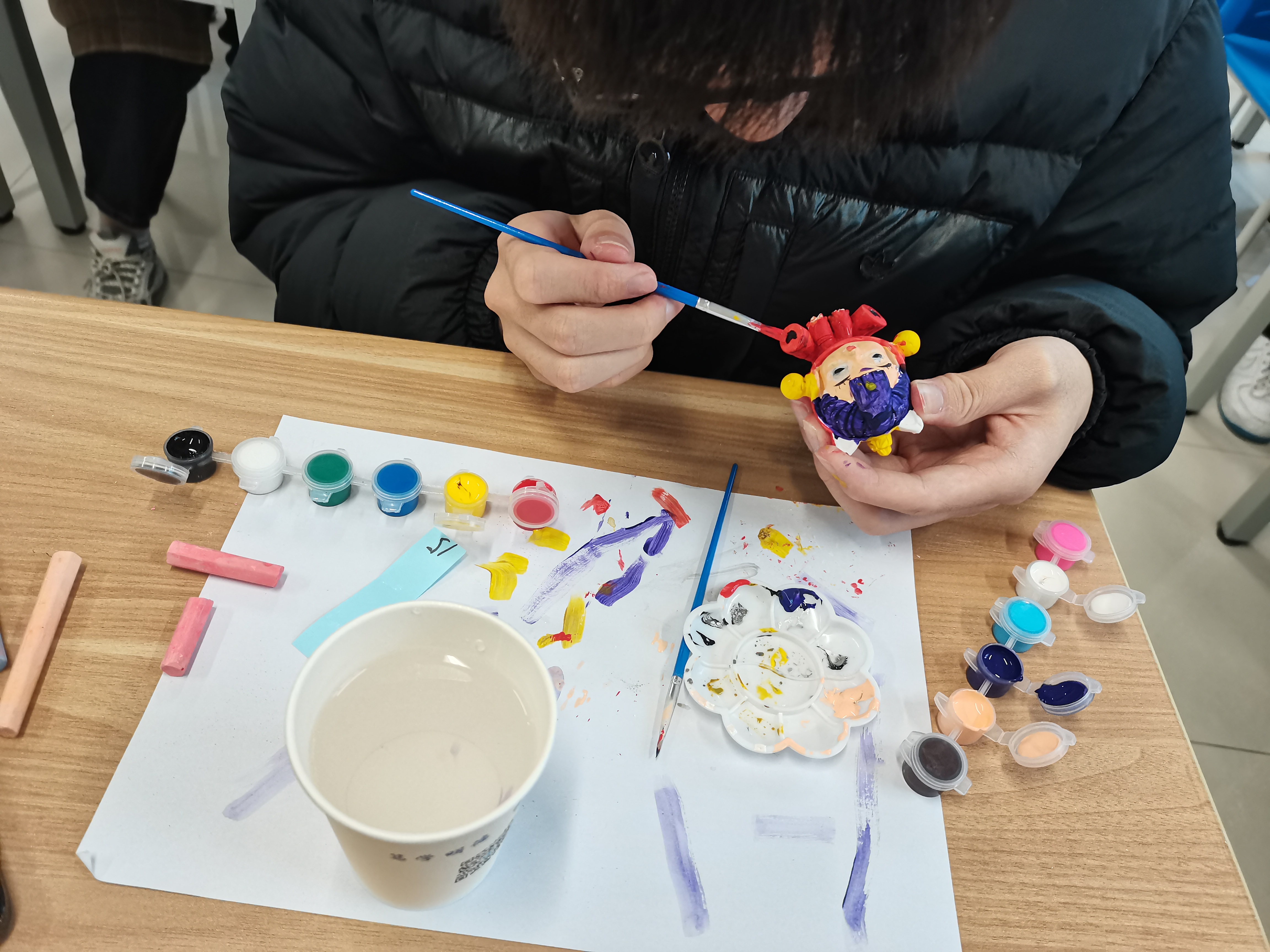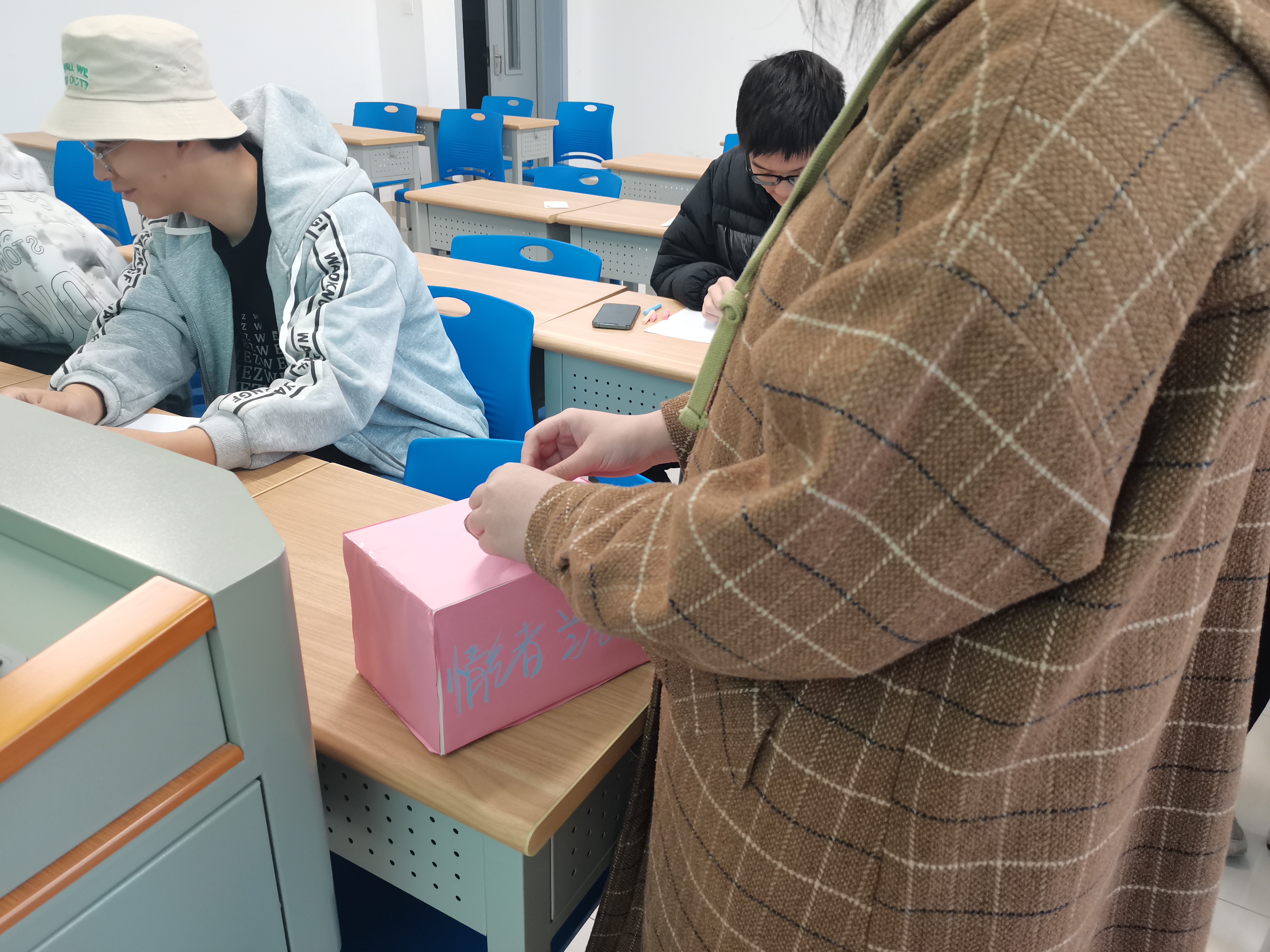 石膏是纯白的,要表现出石膏的生命力除了高超的雕刻技艺外,就是彩绘了。对于大部分人而言,彩绘也更容易赋予石膏生命力。同样彩绘也会让人享受到色彩的梦幻般的千变万化,可以培养自己的色彩感知能力,享受挥舞画笔时的痛快淋漓。谭静老师首先给同学们详细的介绍什么是表达性艺术治疗,让同学们对表达性艺术治疗有初步的认识。接下来,活动开始,同学们通过在小卡片上写下自己的烦恼或许心愿等等,投入到情绪当铺箱,获得在好运箱抽取一次好运卡的机会,抽出的数字将获得相应的石膏娃娃。最后一个环节,所有同学都抽到了自己的石膏娃娃,开始发挥自己的创造力,为白色的石膏娃娃增添色彩。