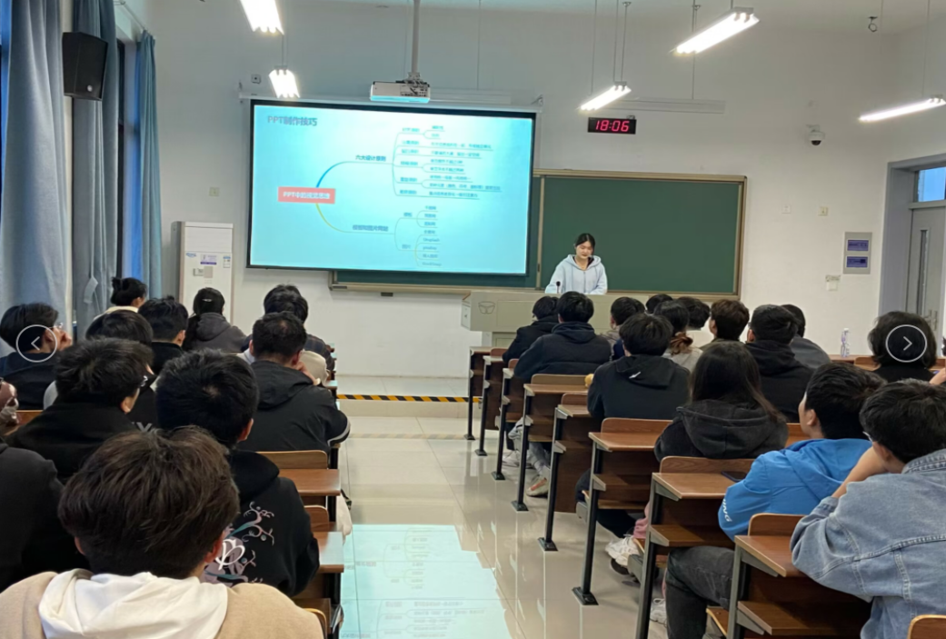 会上,赵薇为同学们传授了制作PPT的经验和心得,讲解制作一份好的PPT所需具备的条件,之后她又分享了自己的保研心得,应争取目标公司夏令营机会,同时指出有保研想法的同学要尽早准备材料、多参加竞赛提升自己的履历,同时她还分享了自己保研准备的过程。李雪同学为同学们分享了省优干和省优毕的申报材料的撰写,应“突出优势,差异化竞争”;最后详细讲解支教保研的相关知识:支教保研的意义、申请加入研究生支教团的条件、招募选拔的环节、选拔标准等等,李雪从支教保研的方向为学弟、学妹们指明了一条新的保研之路。