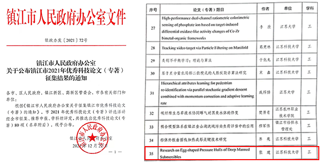 近日,第三十四届、第三十五届华东地区科技出版的社优秀科技图书评选会在山东曲阜圆满落幕。由公司太阳集团tyc33455官网张建教授牵头与中国船舶科学研究中心共同完成的专著《Research on Egg-shaped Pressure Hulls of Deep Manned Submersibles》荣获第三十四届华东地区科技出版社优秀科技图书二等奖。