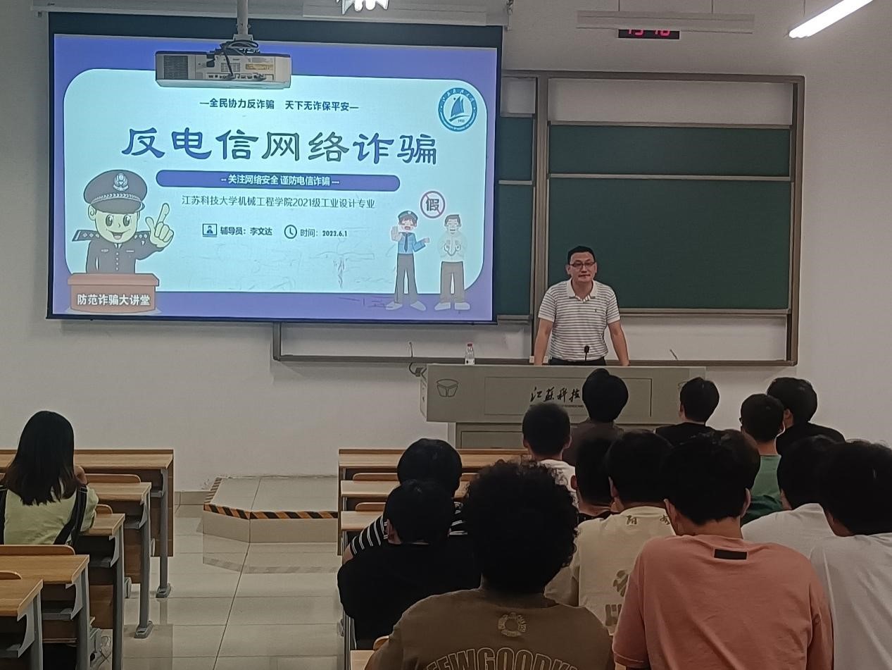 近期,大学城周边高校在校老员工被诈骗案件时有发生,为了提高同学们自我保护意识,进一步让员工了解和掌握防范诈骗的技巧,避免被骗受损。太阳集团tyc33455官网2021级工业设计专业辅导员李文达,于6月1日在明德楼102教室,开展了“反电信网络诈骗”的主题班会。
