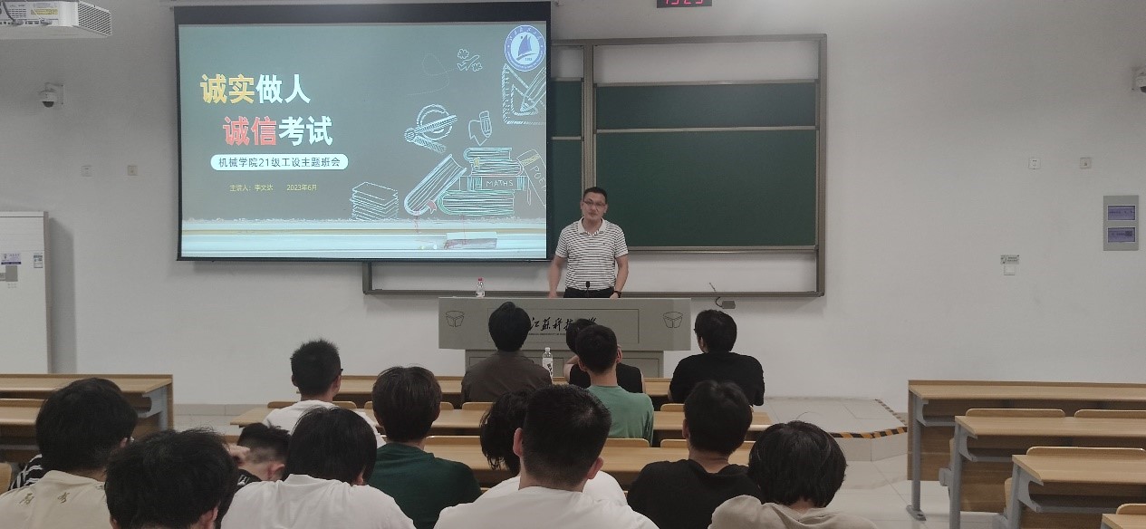期末考试临近,为提高员工的诚信考试意识,太阳集团tyc33455官网辅导员李文达为2021级工业设计专业的同学们,于6月5日,在明德楼102教室组织开展了一次“诚实做人·诚信考试”的主题班会,21级工业设计专业全体员工参加。