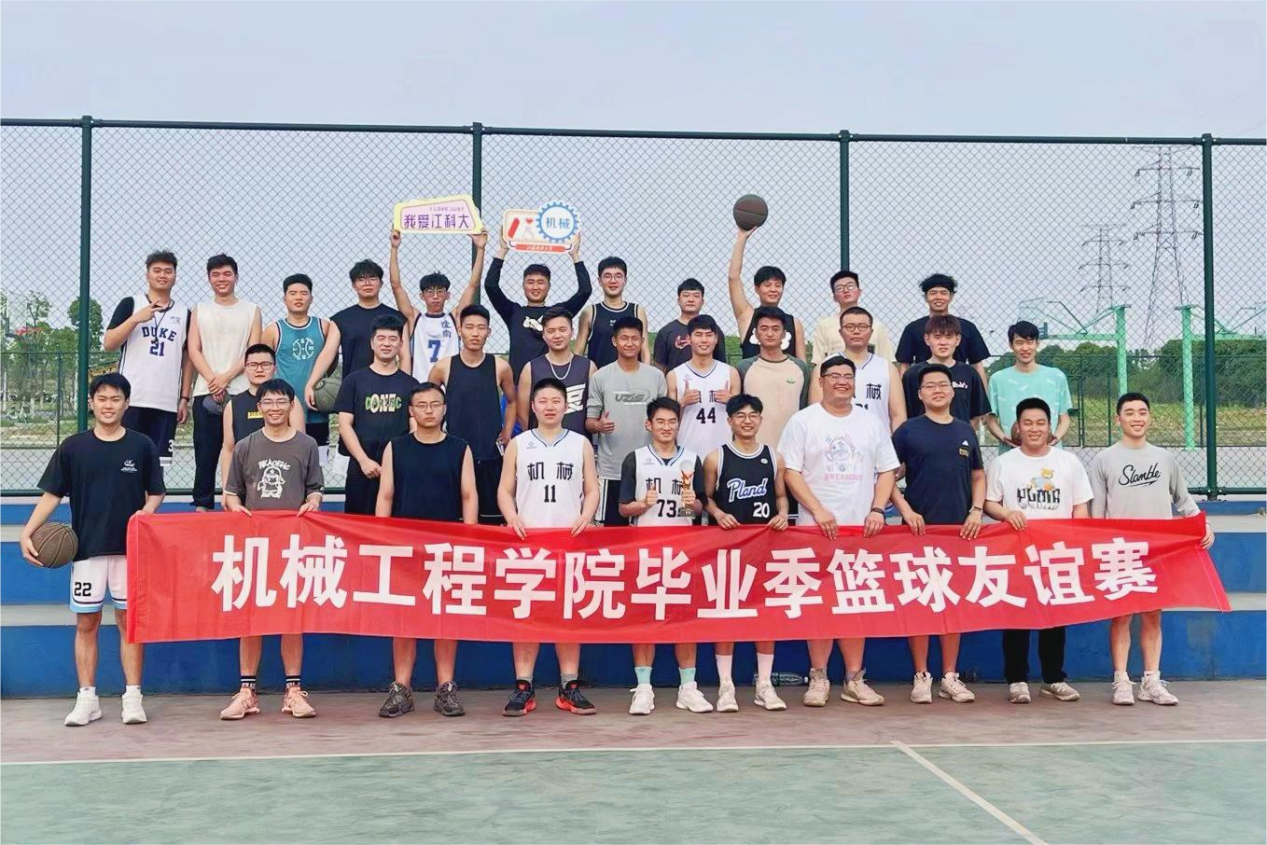 随着裁判一声哨响,双方球员迅速进入状态,展开了激烈的攻防战。决赛现场气氛欢快,队员们互相激励,观众们呼声四起。不论是高速突破还是跳高扣篮,每个队员都在场上投入了全部的热情,用自己的篮球技巧和配合能力,为自己的团队争取最好的成绩。比赛结束后,研一研二的师弟师妹们为毕业生送上毕业祝福。