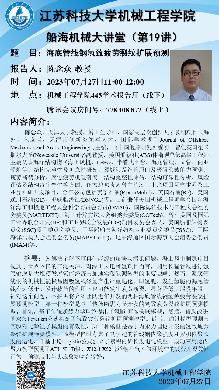 学术报告——海底管线钢氢致疲劳裂纹扩展预测