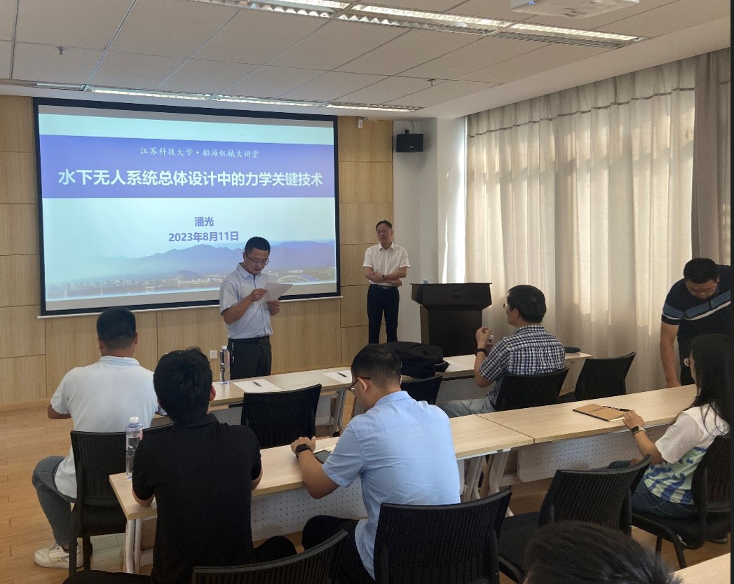 2023年8月11日上午,西北工业大学潘光教授应邀以“水下无人系统总体设计中的力学关键技术”为主题做了精彩的讲座。公司党委副书记、副经理(主持工作)张建主持了本次讲座,公司青年教师和研究生、部分校外同行参加讲座。