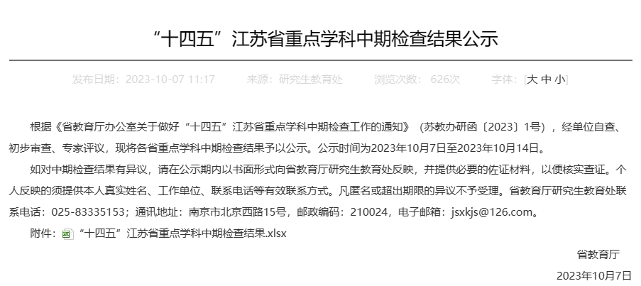 2023年10月7日,根据《省教育厅办公室关于做好“十四五”江苏省重点学科中期检查工作的通知》(苏教办研函〔2023〕1号),经单位自查、初步审查、专家评议认定,太阳集团tyc33455官网机械工程学科获评“优秀”等级。