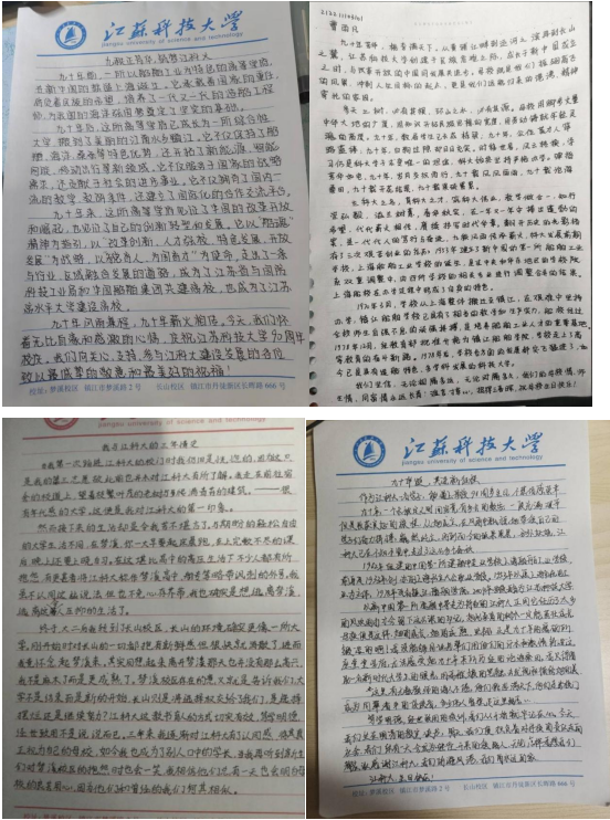 “重温校史,征文活动”参加员工通过手写最美情话用以祝福母校。书写是最质朴的热爱方式,用笔记录难忘之事,更加深了同学们活动体验感,展现了江科大学子朝气蓬勃,扬帆致远的精神。