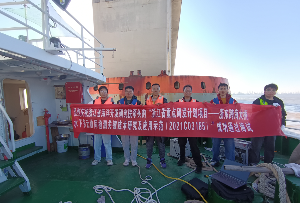 在浙江省重点研发计划项目“浙东跨海大桥水下多元协同检测关键技术研究及应用示范”支持下,公司刘志强、王后连共同开发了一台能够适应复杂海洋环境的水下机器人。2023年11月21日,在东海海域进行了海上试验,顺利通过了海试验收。