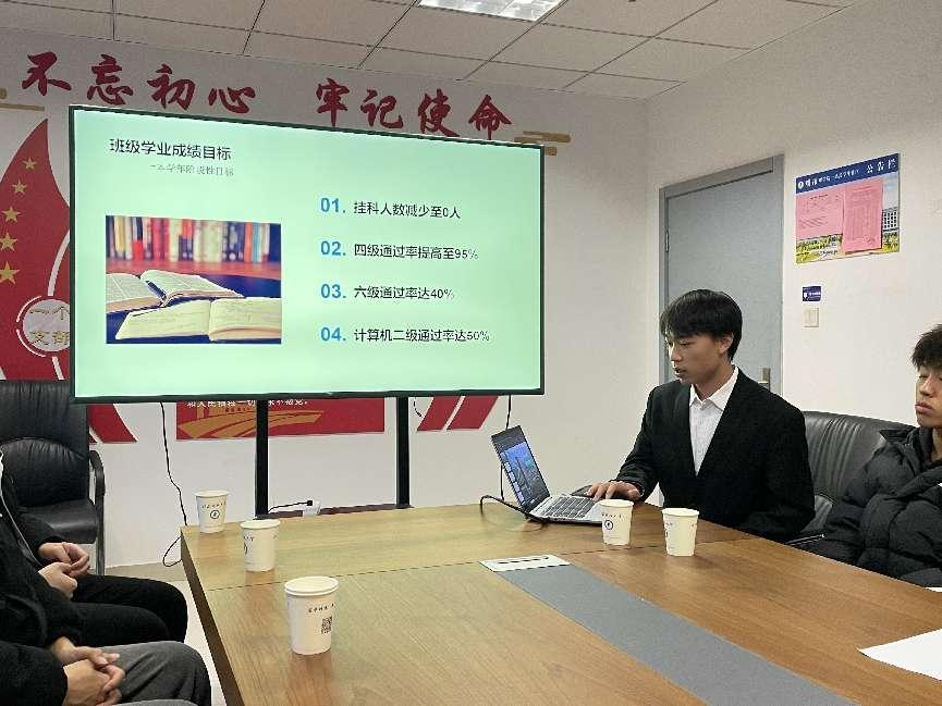 会上,联系班级班长介绍了班级基本情况、班级学风现状及未来班级建设计划及目标。此外,员工代表就机械行业发展方向、考研、专业能力提升、职业规划等方面提出了自己的困惑。