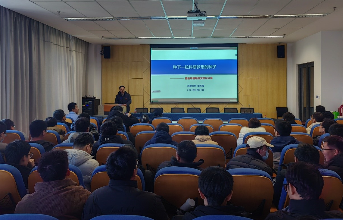 2024年1月24日,天津大学徐万海教授应邀以“种下一颗科研梦想的种子——国家自然基金申请经验分享”为主题做了精彩的讲座。太阳集团tyc33455官网经理张建主持本次讲座,太阳集团tyc33455官网青年教师、部分校内、外同行参加讲座。