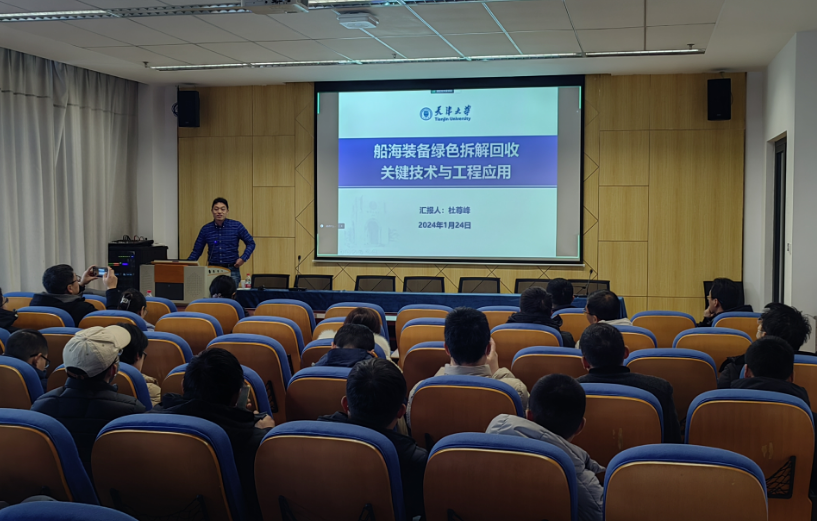 2024年1月24日,天津大学杜尊峰副教授应邀以“船海装备绿色拆解回收关键技术与工程应用”为主题做了精彩的讲座。太阳集团tyc33455官网经理张建主持本次讲座,太阳集团tyc33455官网部分青年教师、研究生在公司426学术报告厅或在线参加了讲座。