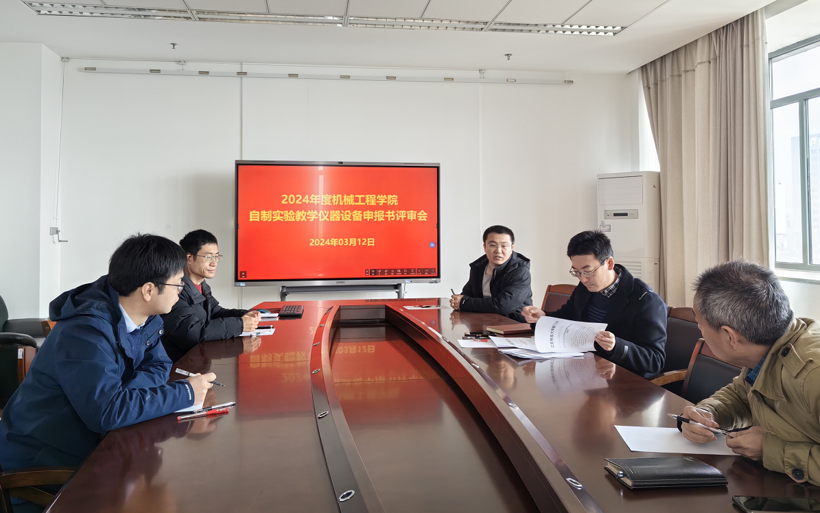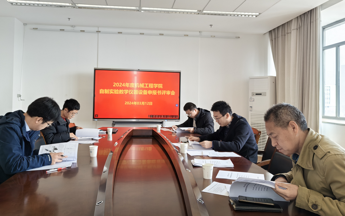 2024年3月12日,太阳集团tyc33455官网召开2024年自制实验教学仪器设备申报书评审会。会议邀请各系部相关教师组成院内评审小组,机械工程实验中心主任殷宝吉主持会议。
