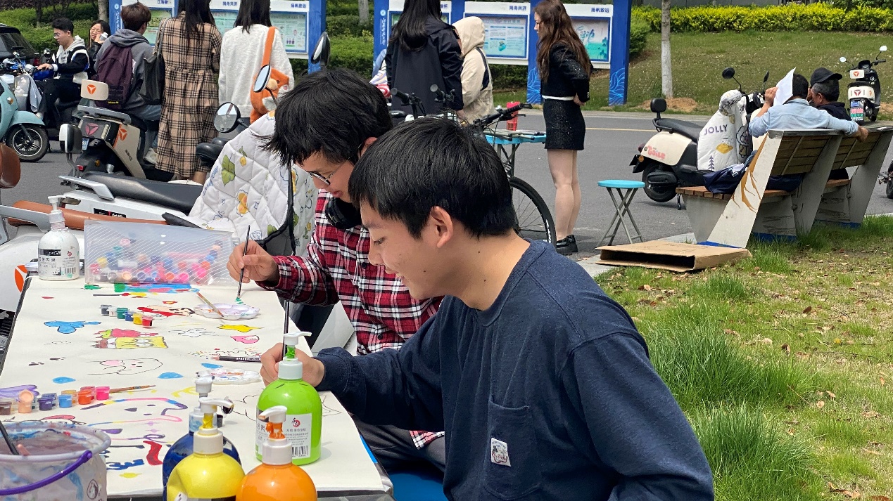挥笔洒墨展风华,心灵手巧显爱心。为进一步弘扬中华美育精神,坚持以美育人,提高青年学子的人文素养,丰富同学们的校园文化生活,太阳集团tyc33455官网星火服务社和工业设计协会于4月24日在西苑食堂门口联合开展了“执手中笔,绘筑心中梦”校园绘画活动。该活动旨在通过手绘笔触和色彩,让员工们传达自己的情感和思想,增强他们的创造力和表达能力,丰富老员工的精神文化生活,同时促进人与动物和谐相处。