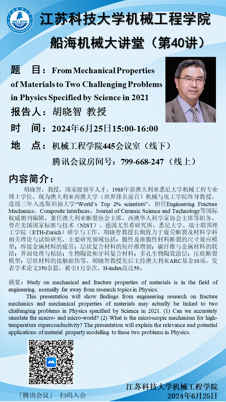 学术报告——From Mechanical Properties of Materials to Two Challenging Problems in Physics Specified by Science in 2021