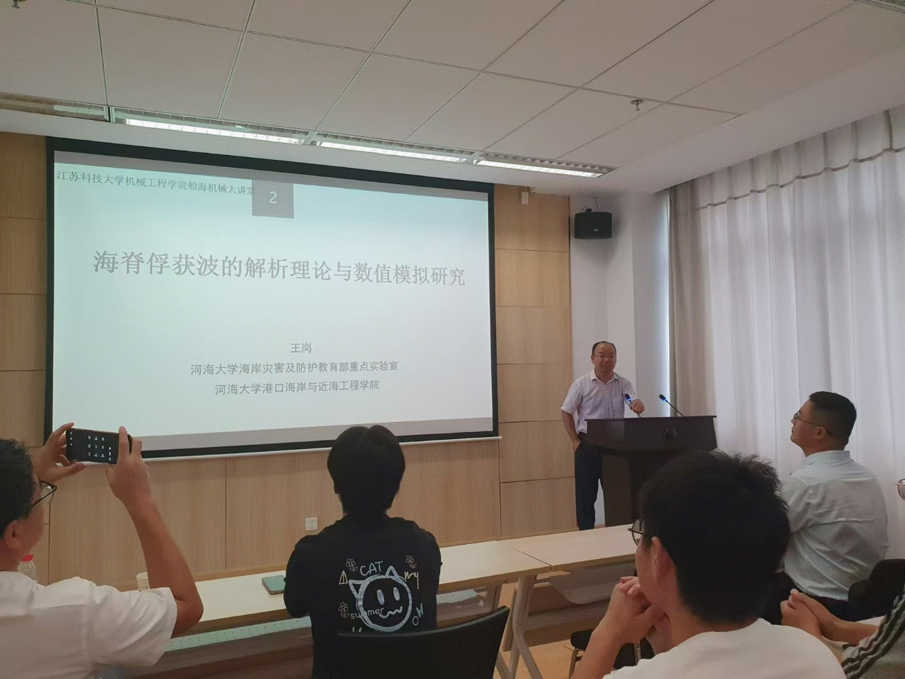 2024年8月14日,河海大学王岗教授应邀做客公司船海机械大讲堂,在太阳集团tyc33455官网445会议室做了题为《海脊俘获波的解析理论与数值模拟研究》的线上、线下混合讲座。太阳集团tyc33455官网经理张建教授主持本次讲座,院内外青年教师、研究生参加本次讲座。