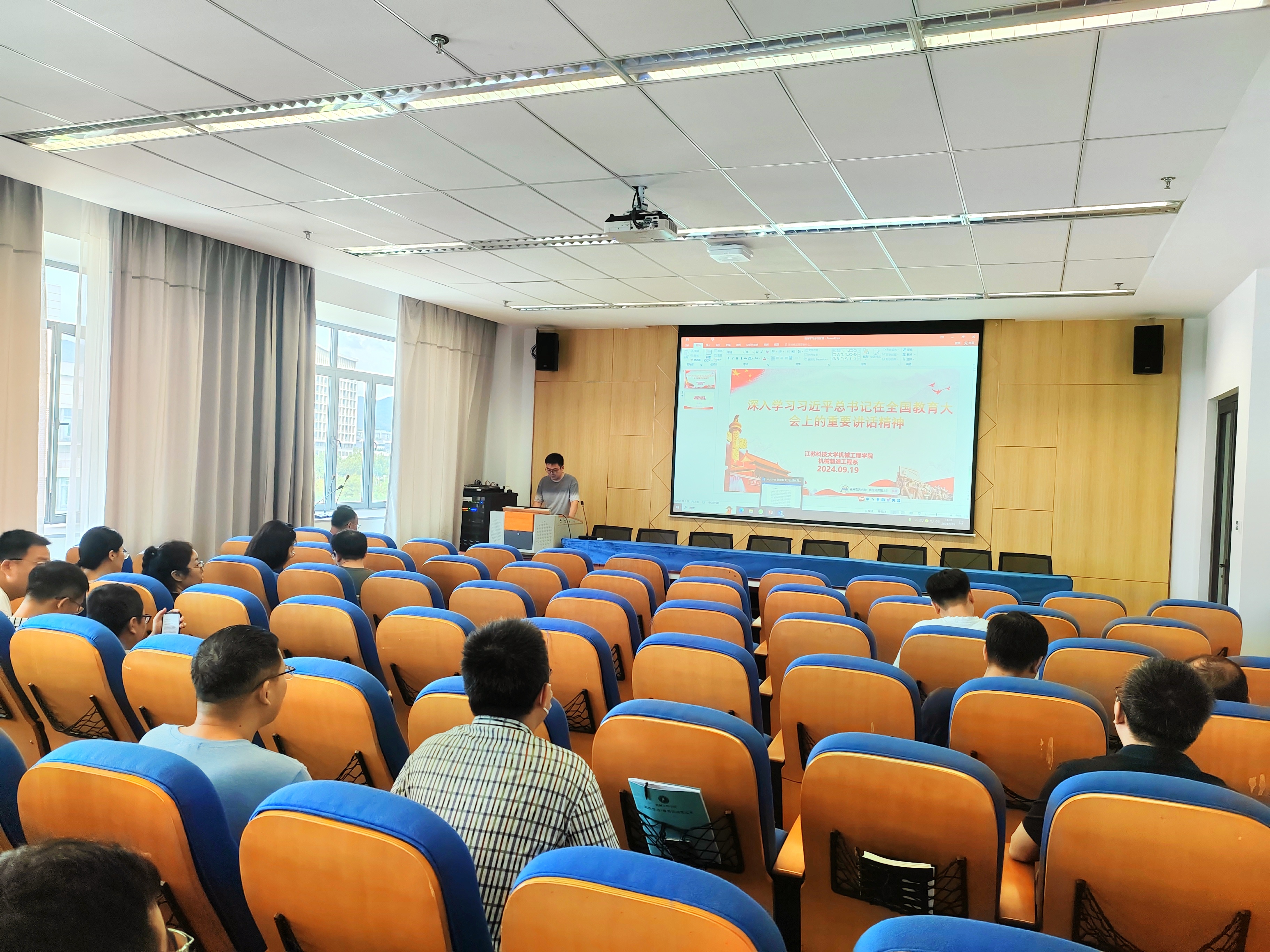各系部教职工集体观看《教育家精神》,深入学习习近平总书记在全国教育大会上的重要讲话精神和《中共中央国务院关于弘扬教育家精神加强时代高素质专业化教师队伍建设的意见》文件精神,理解教育强国、科技强国、人才强国的内在一致性和相互支撑性,思考如何进一步落实立德树人根本任务,弘扬教育家精神;深入学习新学期工作会议精神,重点领会周南平书记、嵇春艳董事长讲话要求。