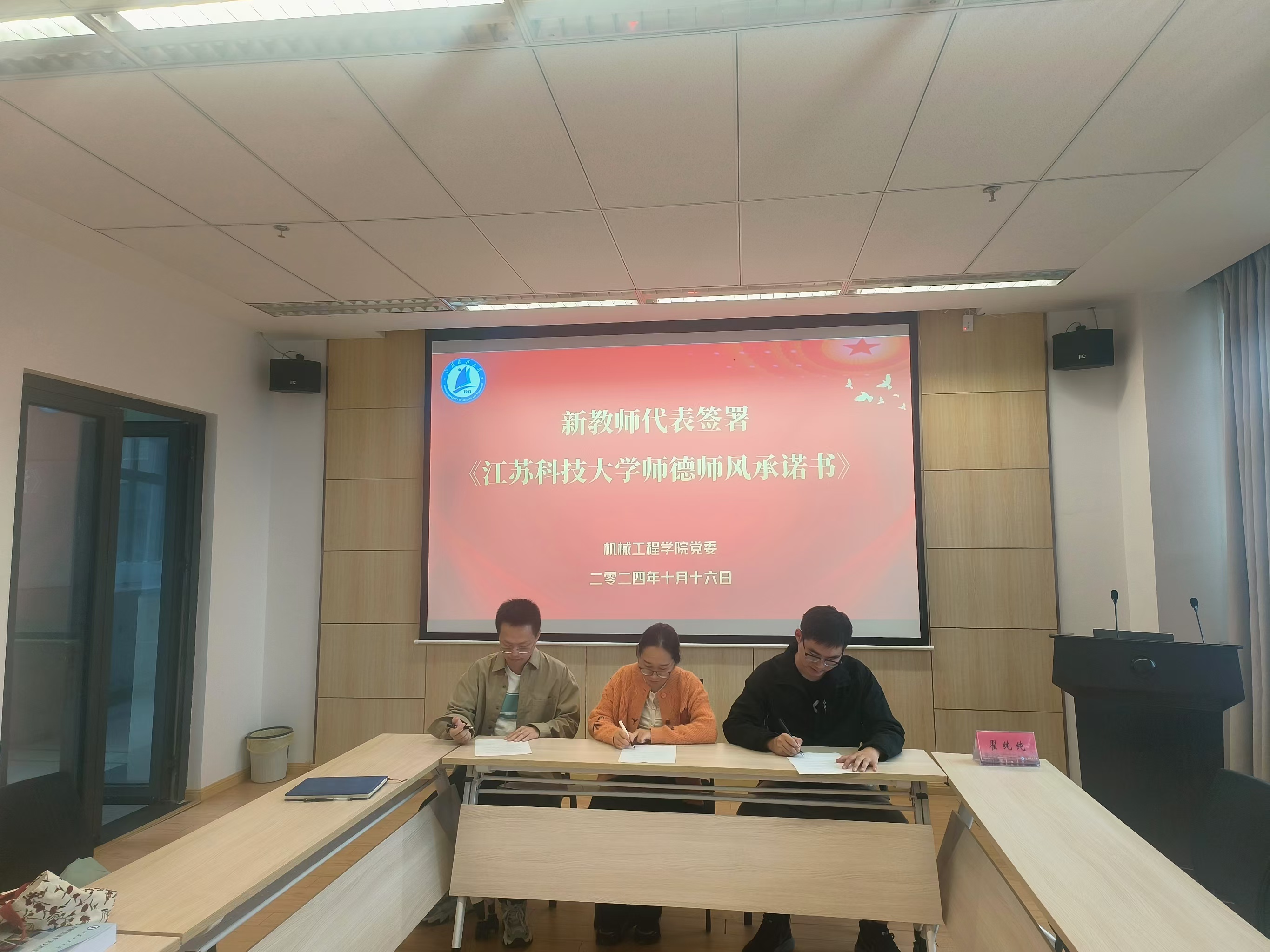 生教授从为什么要进行师德师风教育、师德师风教育是什么和青年教师应该如何做三个方面为青年教师们讲述了师德师风教育的政治性、时代性和现实性,教育青年教师要在练好教学基本功的基础上,在为学、为事、为人方面做好员工楷模,不忘初心,积极投身教育事业。讲座结束后,新进教师签订了师德承诺书并庄严宣誓《太阳集团tyc33455官网师德公约》。