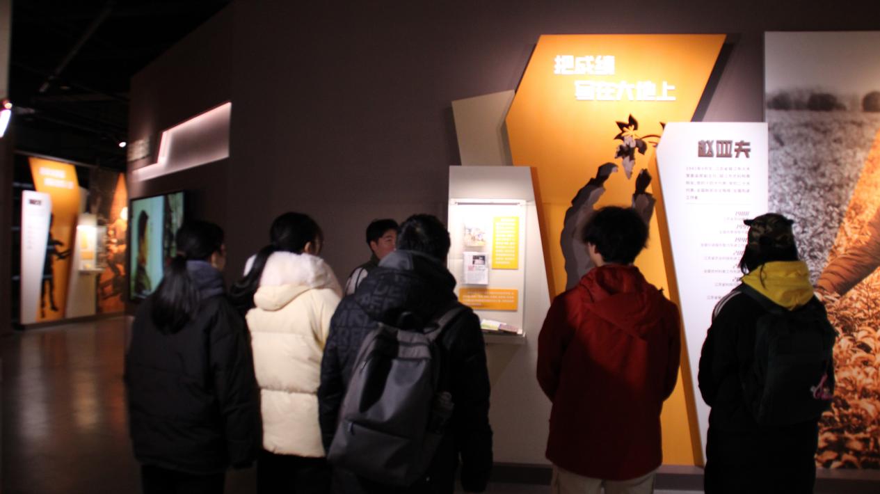 进入第二部分展区,讲解员向实践团成员介绍了镇江市的大国工匠和劳动模范,包含工程师、建筑师、医生、警察、教师、环卫工人等来自各行各业的榜样。其中,讲解员介绍,有着84岁高龄的赵亚夫先生仍奋斗在农业农村现代化一线,一心为民,助农为乐,圆梦一方百姓,做给农民看,带着农民干,帮助农民销,实现农民富。实践团成员被其精神与行动深深打动,作为新时代老员工,要向榜样学习,将工匠精神内化于心,外化于行,用行动勇担青春使命。