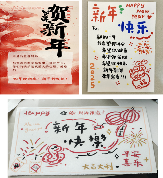 同学们积极参与祝福语征集和新年贺卡制作,每一份作品都充满了对老师、同学、家人和新年的美好祝愿。对联书写和窗花制作环节,更是展现了义工们的艺术才华和对中国传统文化的热爱。这些作品为节日增添了一份特别的喜庆。另外还录制了新年祝福视频,内容健康积极,不乏个人才艺展示,展现了当代老员工的青春风采。