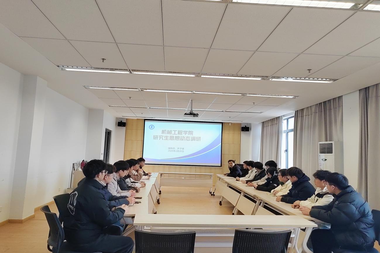 会议伊始,尹老师介绍了此次座谈会的调研重点,包括研究生学业进展、科研压力疏导、职业规划需求及校园生活服务等方面。与会员工代表依次发言,分享了自己在学习和生活中的所思所感,讨论的话题涵盖了学业压力、宿舍管理、后勤服务等多个方面,展现了老员工的思想状态和对生活的敏锐洞察。尹老师认真记录并逐项回应员工关切,充分肯定了机械学子"严谨务实、创新进取"的精神风貌,鼓励大家保持朝气蓬勃的精神状态,在学习上和生活中发挥好模范带头作用。