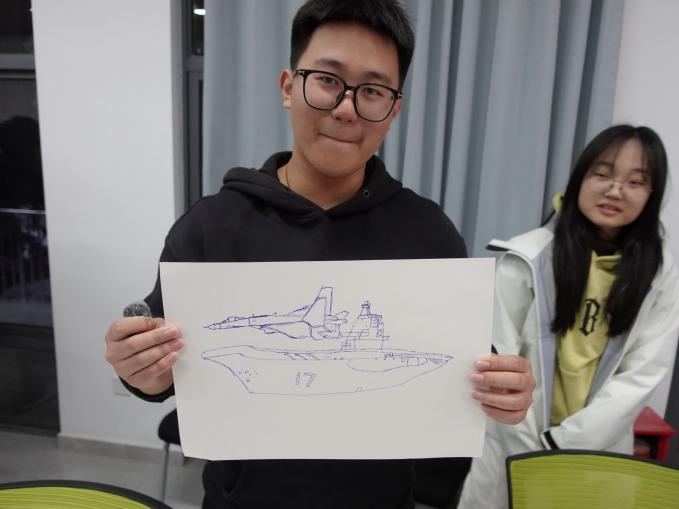 在充满艺术气息的活动现场,同学们用以画笔为媒,将文理大楼的典雅轮廓、航母劈波斩浪的雄姿、海韵湖的鎏金落日、“盖浇饭大学”的趣味图景定格成画作。调色板上跃动的斑斓,正映照着每个人心中不可复制的青春校园。