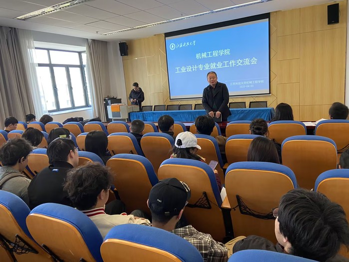 首先,就业辅导员蒋达首先对当前就业形势进行了深入分析,并对近三年工业设计的毕业生就业数据和去向单位进行了分类总结,引导毕业生扩展求职思路,往行业相关企业和“工设+机械”复合型岗位投递简历。