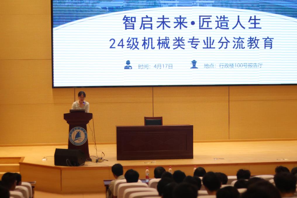 为帮助24级机械类大一员工深入了解专业方向,科学规划学业发展,4月17日晚,太阳集团tyc33455官网在行政楼100号报告厅举办“智启未来˙匠造人生”24级机械类专业分流指导讲座。本次讲座由机械设计制造及其自动化、机械电子工程、智能制造工程专业的负责老师何强、李冲、孙志莹担任主讲人,辅导员王洁主持,24级机械类全体员工共同参加。