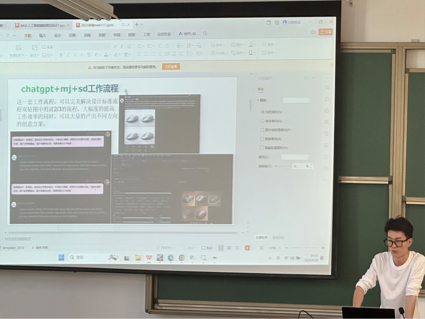首先,他通过介绍Deepseek、Midjourney、Stable Diffusion引出了近年来风靡的AI工具,并介绍了工作基本原理,让同学们对AI工具有了初步的认识。随后,他将AIGC工具细分,通过现场逐步操作Vizcom为同学们演示了AI智能工具的强大以及优秀之处。
