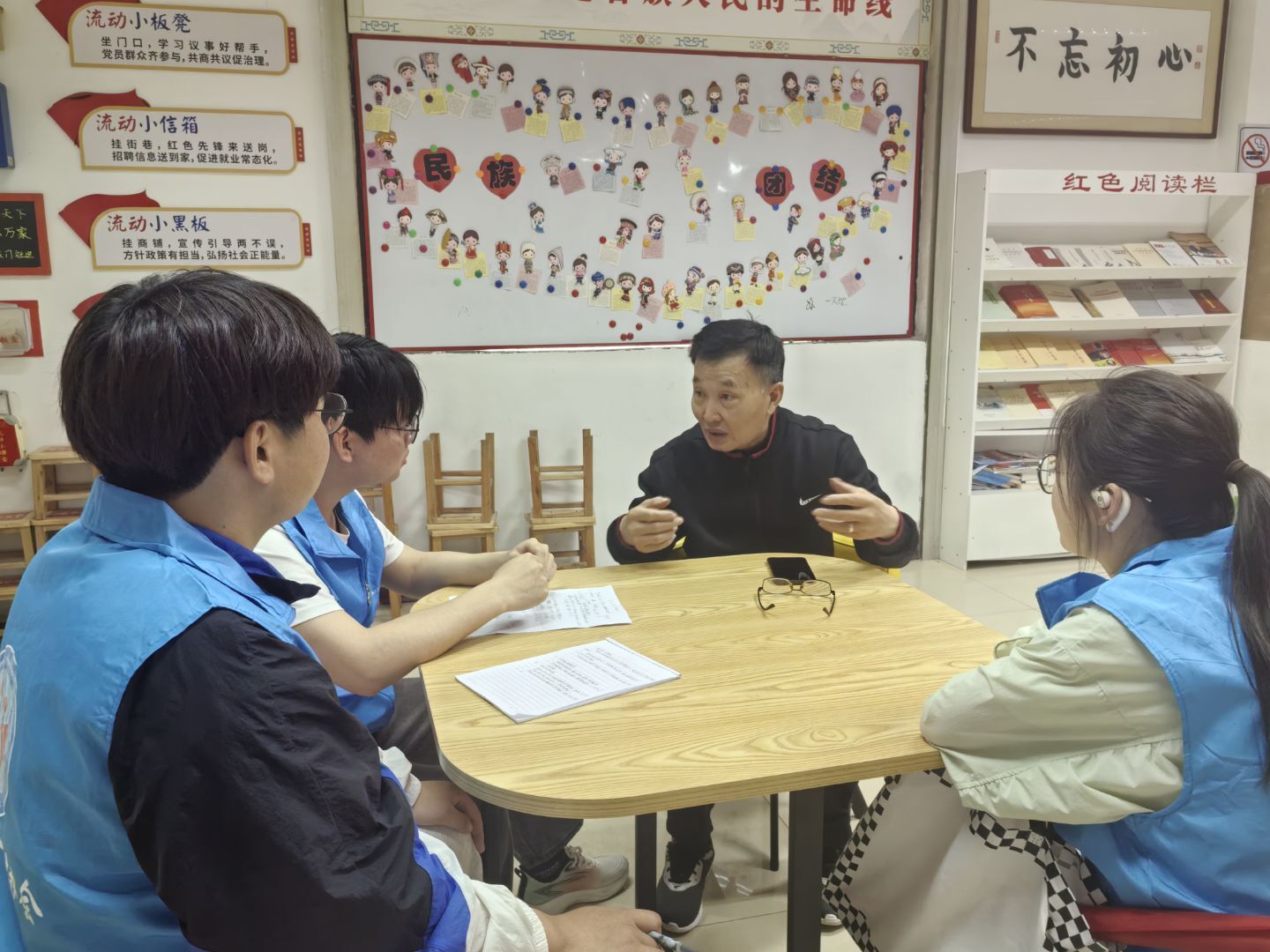 5月10日早晨,青年志愿者们早早的来到杨家门社区,准备与老党员朱老先生展开深入交谈和学习。朱老以亲身经历为教材,向志愿者们讲述了社会主义建设的热血岁月,从穷困潦倒的迷惘到和平年代的奋斗,从艰苦朴素的作风到坚定不移的信仰,老人家用质朴的语言再现了老一辈共产党人“为祖国献青春、为人民谋幸福”的赤诚初心。交谈过程中,志愿者们认真聆听、记录,并通过互动提问深入感悟奋斗精神的内涵。