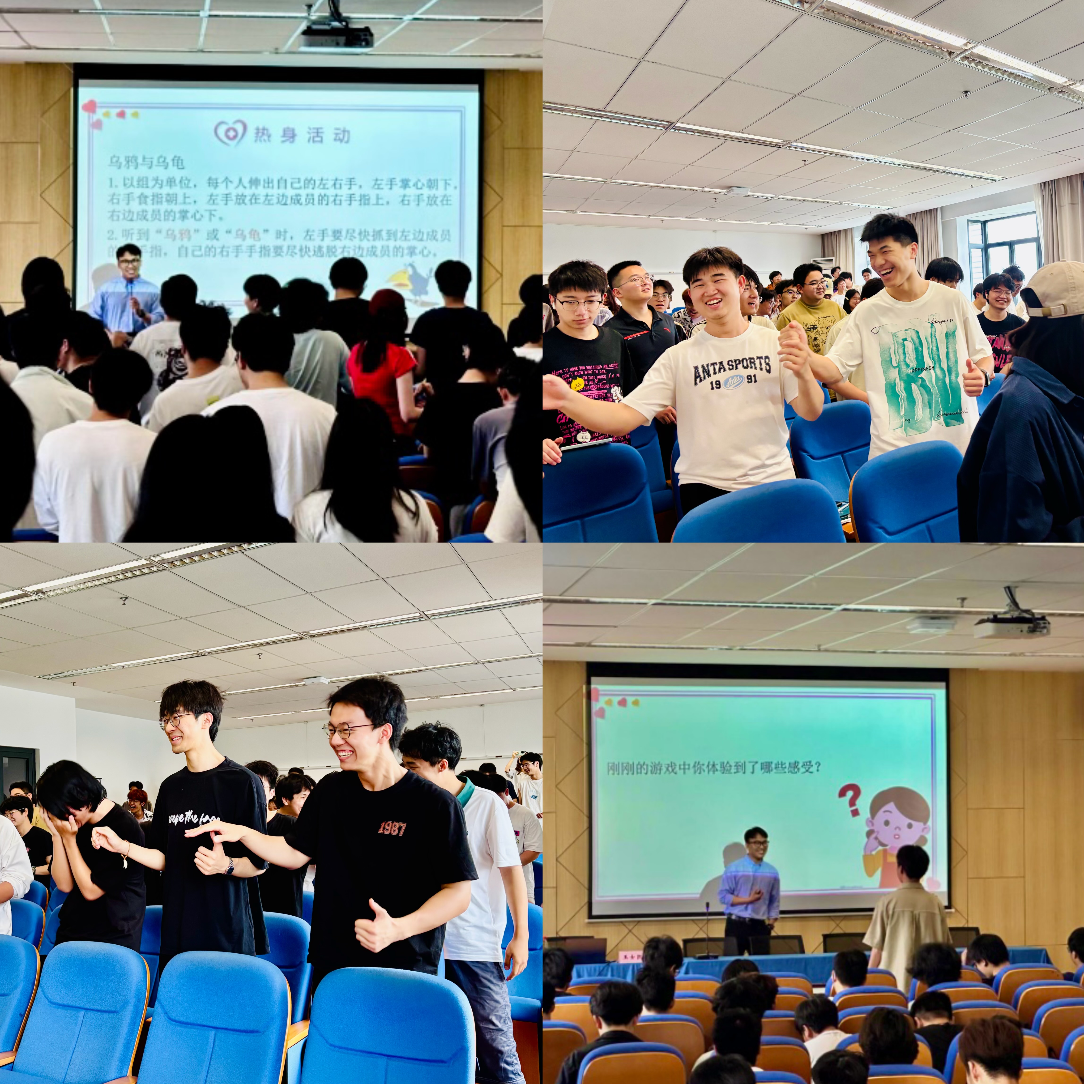 讲座伊始,王老师通过 “乌鸦与乌龟” 这一热身游戏迅速活跃现场气氛。员工们分组互动,在游戏过程中感受紧张与刺激。