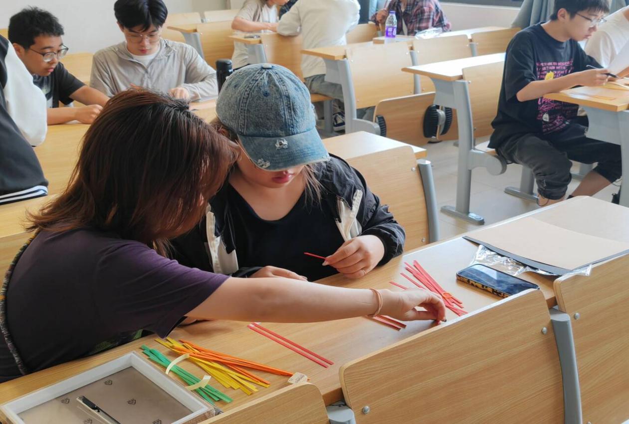 同学们创作竹编画时,负责人时刻留意大家的进度。遇到编织手法不熟练的同学,负责人不仅详细讲解,还亲自示范,提醒注意事项;面对构图疑问,会鼓励创新并给出建议。他们耐心解答各类问题,助力同学们顺利创作。