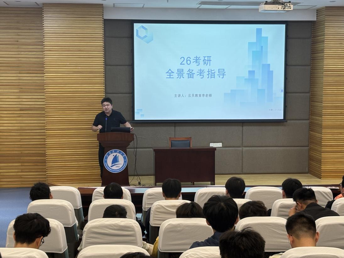 分享环节结束后,云天教育李老师以“26届考研全景备考指导”为题带来精彩讲解。他结合就业形势阐述考研必要性,剖析择校要素,解读25届考研新趋势与往届公司考研数据,还针对各科目细化复习规划、推荐适配资料。其讲解逻辑清晰、干货满满,为同学们梳理出系统的备考思路,带来全新启发。