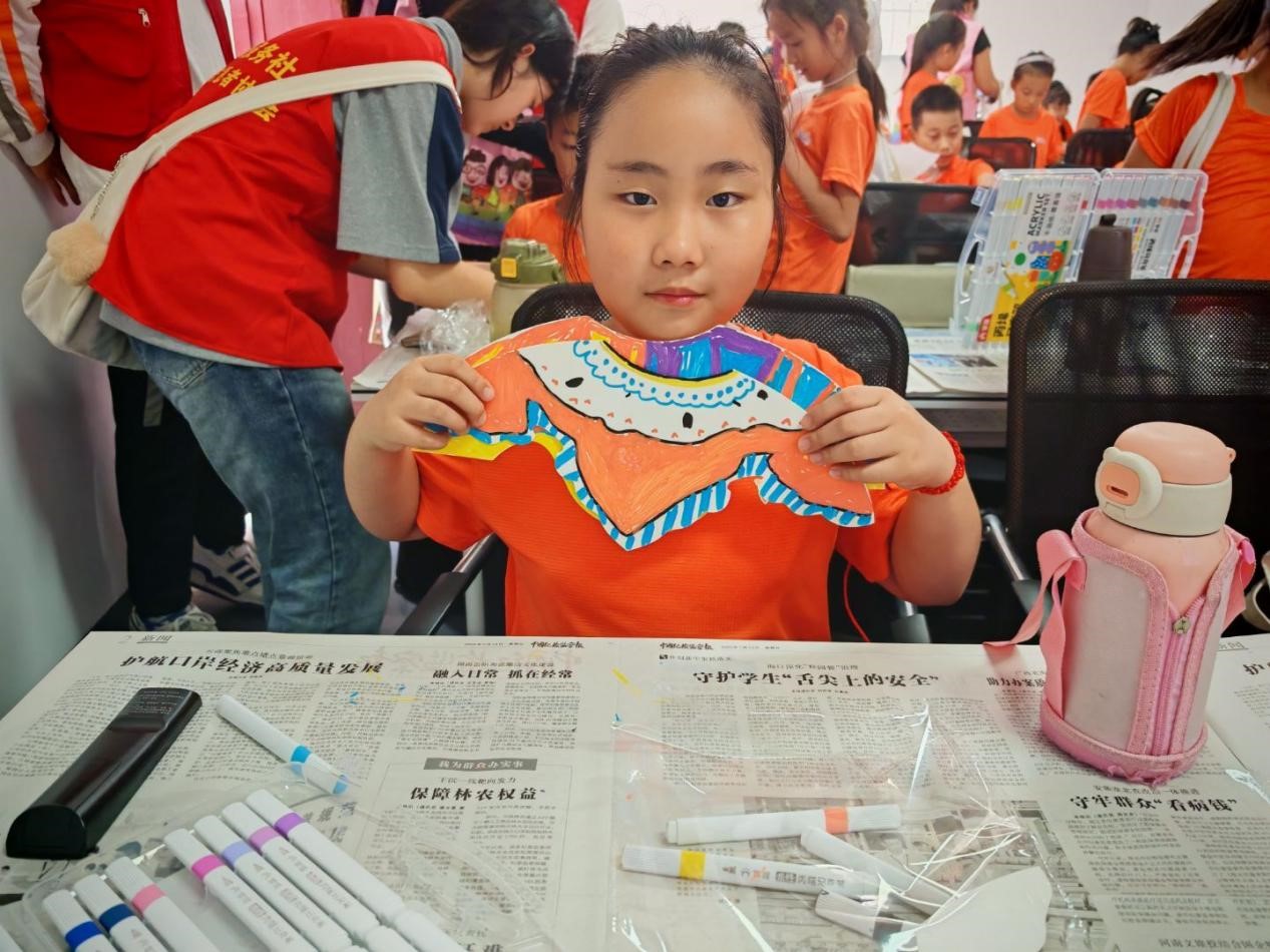 图为小朋友展示制作的云肩作品 杨帅 摄