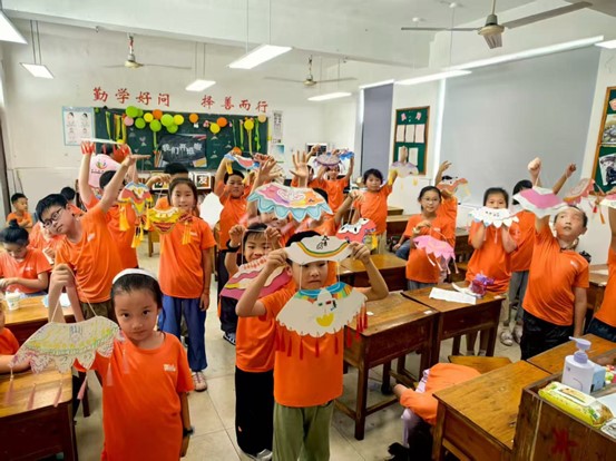 当创作完成,一件件独一无二的小云肩在孩子们指尖诞生时,喜悦洋溢在每个人的脸上——它们或精准复刻了戏曲纹样的典雅端庄,古韵悠然;或全然跳脱框架,以明快的色彩和天马行空的图案,绽放出纯粹的童趣。这些承载着孩子们巧思与未来希冀的“肩头云霞”,正轻盈地绽放,不仅是一件件手工作品,更是一颗颗传统文化种子在他们心中萌发的新芽。
