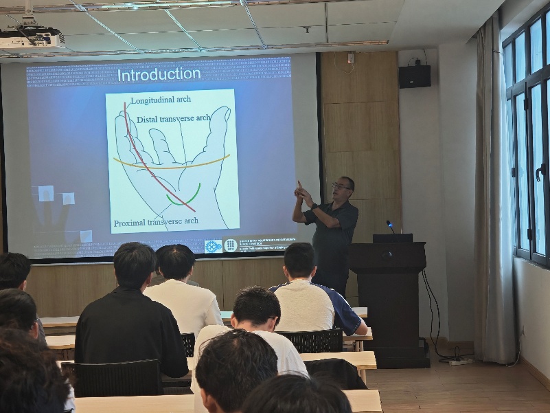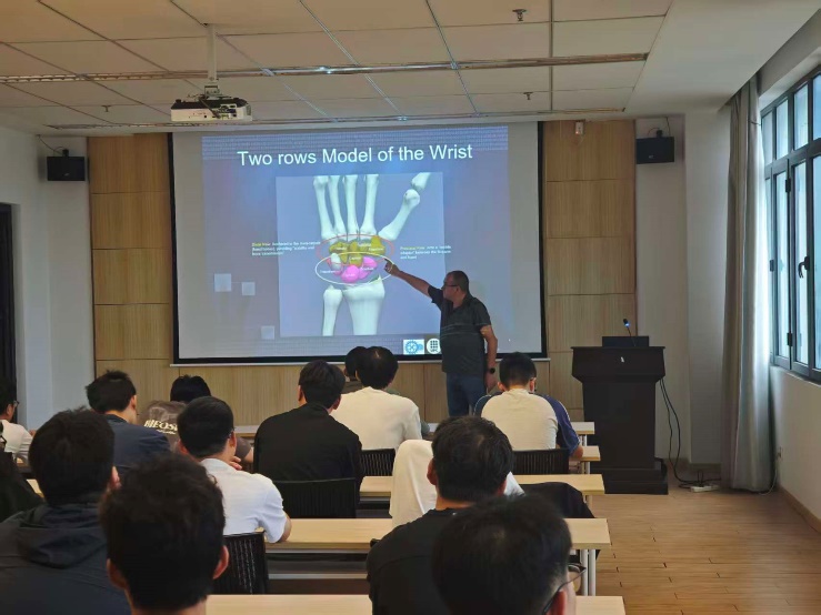 Esteban Peña-Pitarch教授围绕其团队开发的机械手精炼模型,深入分享了人类手部虚拟建模与仿真技术。他指出,当前主流的手部模型功能各有侧重:部分模型聚焦于强化物体抓取能力,另一部分则致力于解决制造业操作、工业装卸等场景中的重复抓取问题。而其团队的机械手模型具备极高的仿生精度——手部拥有29个自由度,手腕则达9个自由度,可精准模拟人类手部动作。一方面,能为医生、物理治疗师等提供技术工具,助力个性化的康复系统设计;另一方面,可为更精确机器人手模型的开发提供指导。